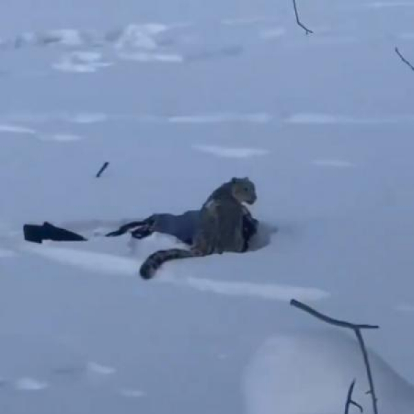 Появилось видео нападения снежного барса на туристку, которая попытался сфотографировать хищника с близкого расстояния в городе Коктокай (Синьцзян-Уйгурский автономный район).