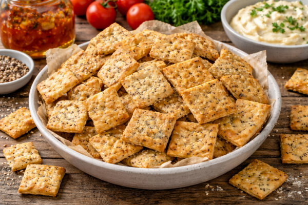 Выпекаю при 180 градусах около 15 минут до румяности. После духовки обязательно даю им полностью остыть — именно тогда крекеры становятся особенно хрустящими и рассыпчатыми.