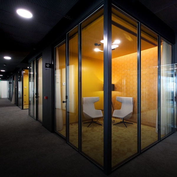 Вдохновившись проектами Fokkema&Partners в таких городах, как Амстердам, Роттердам, было принято решение завесить окна рабочего пространства именно шторами, так как они пропускают дневной свет в коридоры. Шторы установлены во всех приватных офисах, конференц-залах и директорских кабинетах и предварительно подверглись специальной огнезащитной обработке для обеспечения пожарной безопасности.