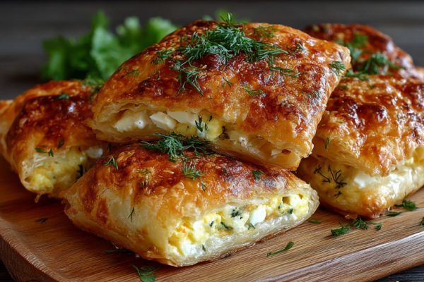 Получается обалденная вкуснятина: хрустящее слоистое тесто с золотистой корочкой, а внутри — нежная начинка из рубленых яиц, расплавленного сыра и свежей зелени, которая буквально тает во рту.