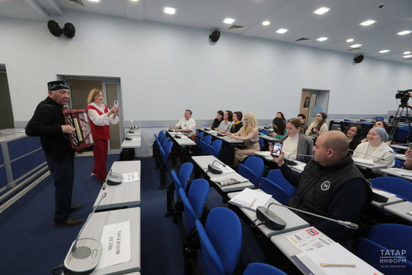 Перед началом мероприятия заслуженный деятель искусств Татарстана Алмаз Хамзин встретил участников, исполнив песни под баян и предложив им подпевать.